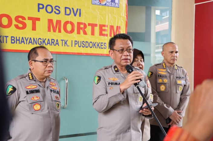 Kepala Rumah Sakit Bhayangkara Tk.I Pusdokkes Polri Brigjen Pol. dr. Prima Heru Yulihartono menyampaikan duka cita yang mendalam kepada seluruh keluarga korban atas musibah tersebut