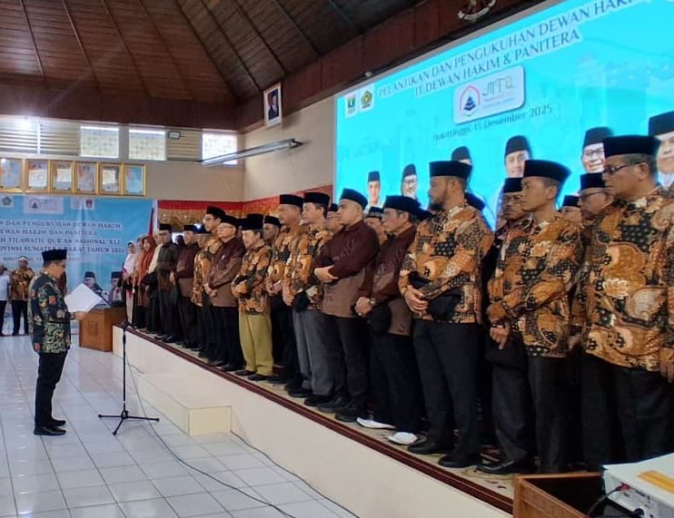 Dailykepri.com | Bukittinggi – Sebanyak 279 personel resmi dilantik dan dikukuhkan untuk mengemban tugas dalam pelaksanaan Musabaqah Tilawatil Qur’an (MTQ) Nasional ke-XLI Tingkat Provinsi Sumatera Barat. Pelantikan yang berlangsung di Istana Bung Hatta, Kota Bukittinggi, pada Sabtu, 13 Desember 2025, dipimpin oleh Asisten Pemerintahan dan Kesejahteraan Rakyat (Aspem-Kesra) Setdaprov Sumatera Barat, Ahmad Zakri, mewakili Gubernur Sumatera Barat.