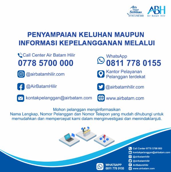 Dengan berbagai kanal komunikasi yang tersedia, Air Batam Hilir berharap dapat terus meningkatkan kualitas pelayanan dan menjalin hubungan yang lebih baik dengan pelanggan.