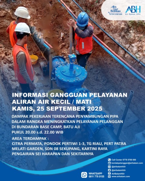 Air Batam Hilir mengucapkan terima kasih atas pengertian dan kerja sama pelanggan selama proses pekerjaan berlangsung.