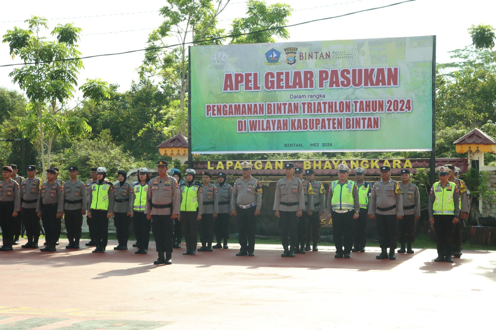 “Dengan pelaksanaan apel gelar pasukan ini kita dapat memastikan kesiapan personil pengamanan yang akan diterjunkan di lapangan guna menjamin pelaksanaan pengamanan Event Bintan Triathlon tahun 2024 ini dapat terlaksana dengan aman dan lancar”, terangnya.