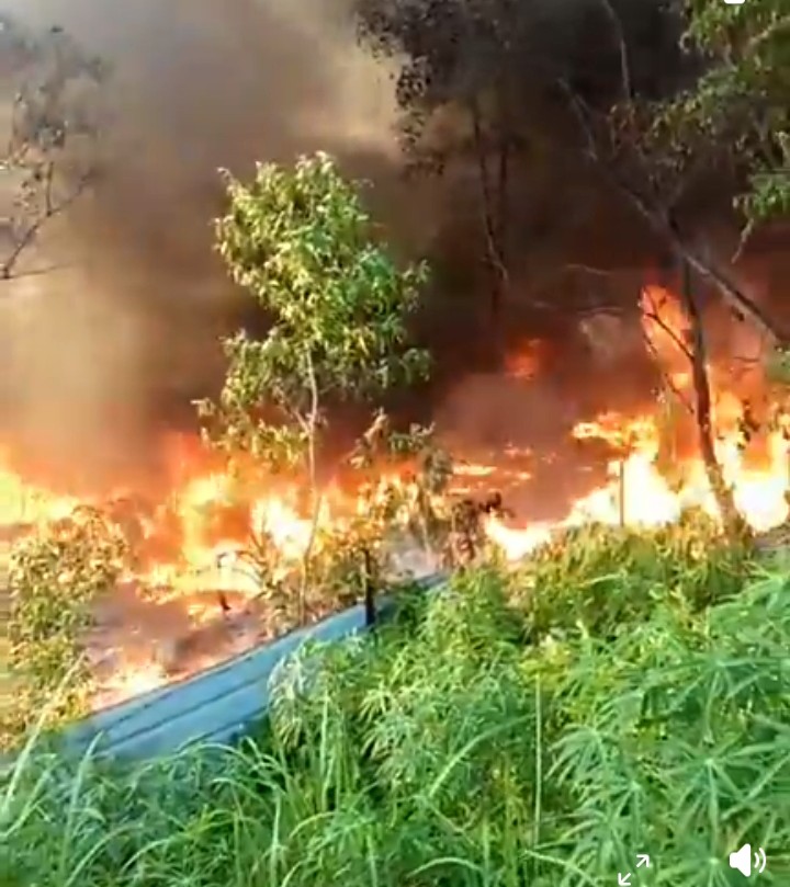 Tiupan angin kencang dari perbukitan sekitar memperparah situasi, membuat kobaran api semakin sulit dikendalikan.