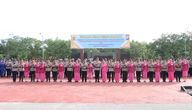Upacara dihadiri oleh Ketua Bhayangkari Cabang Kota Barelang Ny. Rika Anggoro, Pejabat Utama Polresta Barelang, para Kapolsek jajaran, pejabat yang melaksanakan serah terima jabatan, personel Polresta Barelang, PNS Polresta Barelang, serta Bhayangkari Cabang Kota Barelang. Kehadiran seluruh peserta menunjukkan dukungan terhadap kelancaran dan suksesnya kegiatan tersebut.