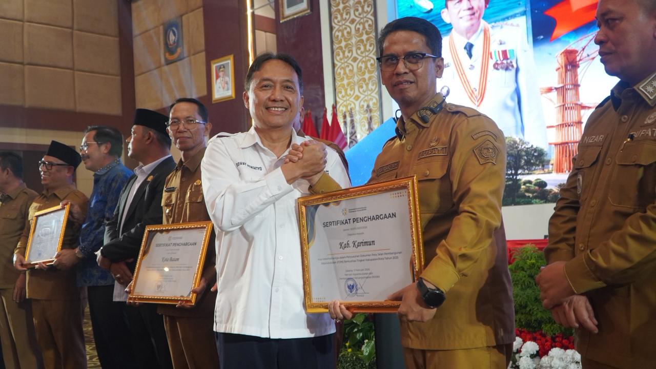 Penghargaan dari Kemendukbangga/BKKBN langsung diberikan oleh Deputi Pengendalian Penduduk, Bonivasius Prasetya Ichtiarto kepada Gubernur Kepri, Bupati Karimun, Bupati Natuna dan Walikota Batam atas prestasi penyusunan PJPK kualitas terbaik di daerahnya. Selanjutnya penghargaan kepada Bupati Karimun atas diseminasi informasi pelayanan KB melalui video “Budak Mude Molek Ber-KB”