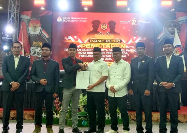 Dailykepri.com | Bukittinggi – Setelah Komisi Pemilihan Umum (KPU) Bukittinggi melakukan rekapitulasi hasil pemilihan Suara Pilkada 2024, KPU mengadakan rapat pleno penetapan pasangan calon Walikota dan Wakil Walikota kota Bukittinggi terpilih Pilkada tahun 2024, di Hotel monopoli Bukittinggi, Kamis, 9/1/2025.