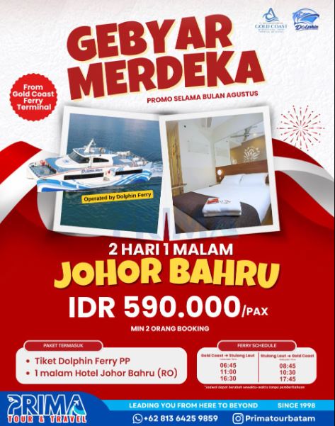 Paket promo ini mencakup tiket kapal pulang-pergi dari Batam ke Pelabuhan Stulang Laut, Johor Bahru, serta akomodasi satu malam di Hotel Tunne. Penumpang akan dilayani oleh kapal Dolphin Ferry yang beroperasi tiga kali sehari dari Pelabuhan Gold Coast, yakni pukul 06.45 WIB, 11.00 WIB, dan 16.30 WIB. Sementara jadwal dari Stulang Laut ke Batam tersedia pukul 08.45, 10.30, dan 17.45 waktu Malaysia.
