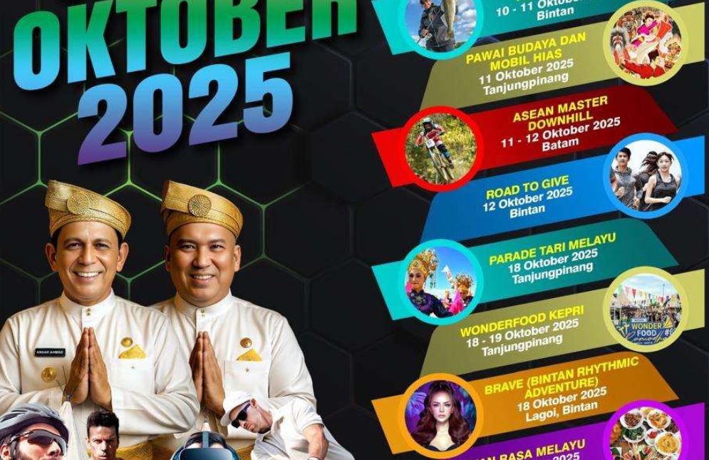 Kepri juga menghadirkan kegiatan olahraga ekstrem dan sosial, seperti ASEAN Master Downhill di Lagoi Bay Bintan (11–12 Oktober) dan Road to Give, maraton amal yang digelar 12 Oktober. Seluruh hasil pendaftaran Road to Give akan disalurkan ke berbagai wilayah di Indonesia.