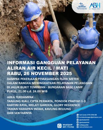 “Pekerjaan ini merupakan bagian dari upaya kami dalam meningkatkan efisiensi dan akurasi sistem distribusi air. Kami mohon maaf atas ketidaknyamanan yang ditimbulkan dan mengajak pelanggan untuk bersiap menghadapi gangguan sementara ini,” ujar perwakilan Air Batam Hilir dalam keterangan resminya.