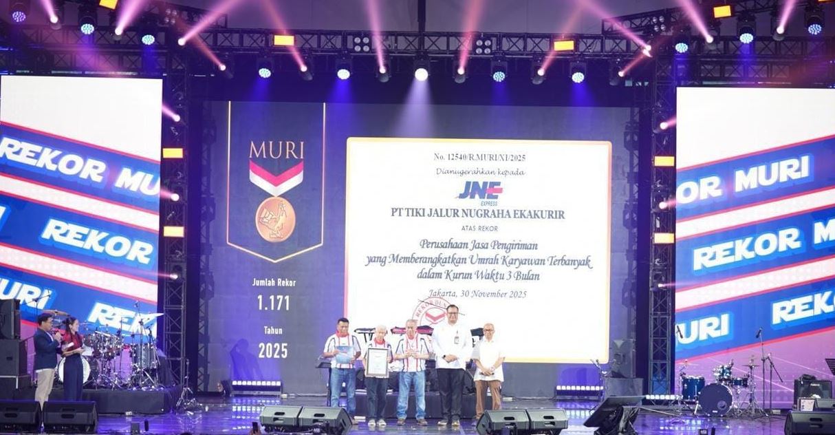 Dalam momentum bahagia ini, JNE juga mendapatkan pengakuan istimewa. JNE berhasil mencatatkan rekor di Museum Rekor Indonesia (MURI) sebagai perusahaan ekspedisi tajuk rekor Perusahaan Jasa Pengiriman yang Memberangkatkan Umrah Karyawan Terbanyak dalam Kurun Waktu 3 Bulan. Sebanyak 1.171 karyawan/ti diberangkatkan dalam kurun waktu tiga bulan dari September hingga November 2025. Pemberangkatan Umrah karyawan ini merupakan kegiatan rutin tahunan JNE sebagai bentuk apresiasi perusahaan yang tinggi terhadap kinerja karyawan yang telah mencapai massa kerja 12 tahun.