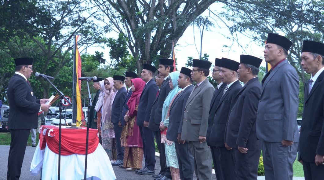 “Alhamdulillah saat ini kita sudah melaksanakan pelantikan yang kedua. Kita bekerja tidak dengan asumsi, tapi dengan aturan. Terdapat 3 orang eselon II, 5 orang eselon III, dan 12 orang eselon IV. Sekali lagi saya ucapkan selamat kepada bapak dan ibu yang dilantik hari ini. Mari bekerja sesuai aturan, tegakkan disiplin dan profesionalitas,” ujar Ramlan dalam arahannya.