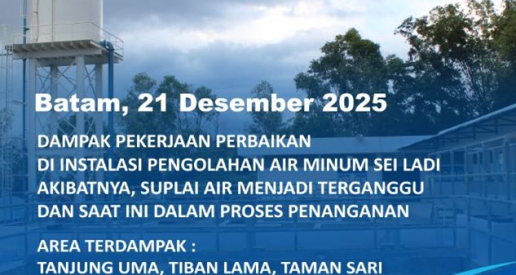 Dailykepri.com | Batam – Air Batam Hilir menginformasikan terjadinya gangguan suplai air Baca Selengkapnya