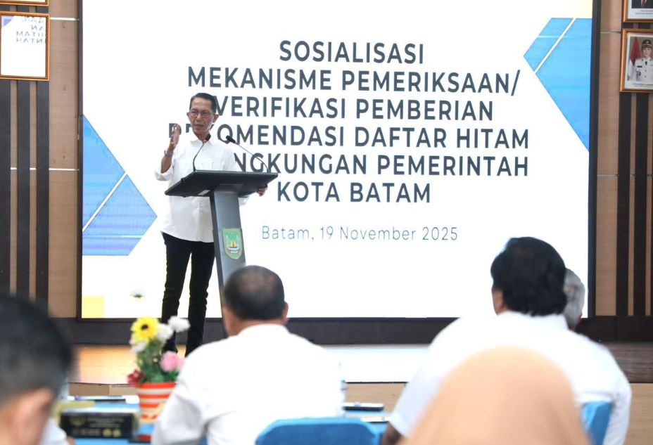Dailykepri.com | Batam – Wali Kota Batam, Amsakar Achmad, membuka Sosialisasi Mekanisme Pemeriksaan dan Verifikasi Pemberian Daftar Hitam di Aula Engku Hamidah, Kantor Wali Kota Batam, Rabu (19/11/2025).